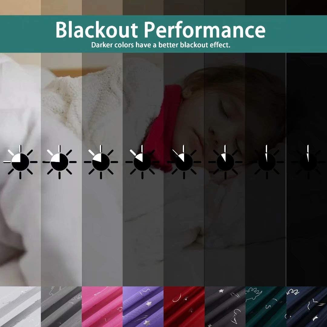 PREMIUM BLACKOUT MATERIAL: Our kids blackout curtains is made of 100% polyester fabric and have the same color of the front and back. Crafted in a certified STANDARD 100 by OEKO TEX factory from a durable soft and thick triple weave blackout fabric which block out 90% above sunlight and UV rays. Darker colors work better.