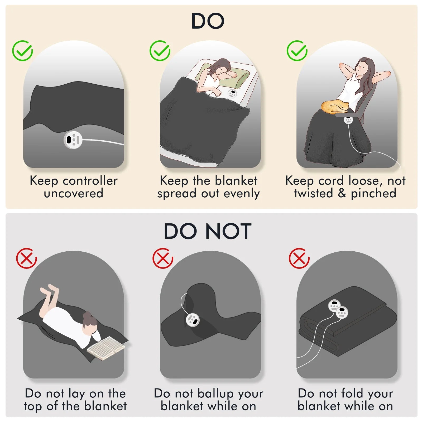 - Dual Controllers: With dual controllers, you and your partner can individually adjust the heat settings on your respective sides of the queen size heated blanket, ensuring personalized comfort without disturbing each other.