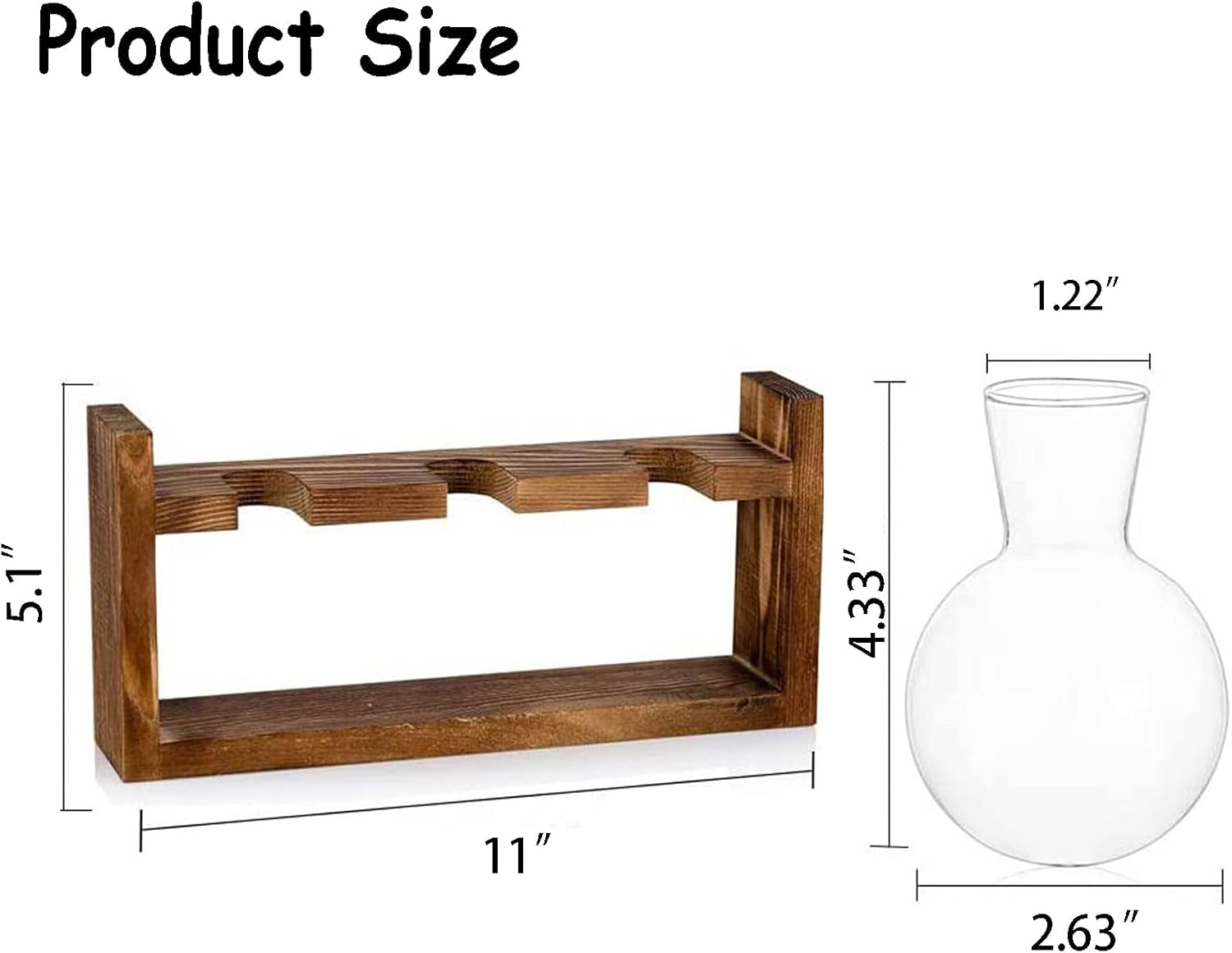 - Hassle-Free Maintenance Design:Quick-release glass terrariums simplify water changes. Each Vase size: 4.33"H x 2.63" W x 1.22" opening, fits most plant cuttings. 11"L x 5.1"H wooden stand ensures stable display on windowsills, desks, or dining tables.