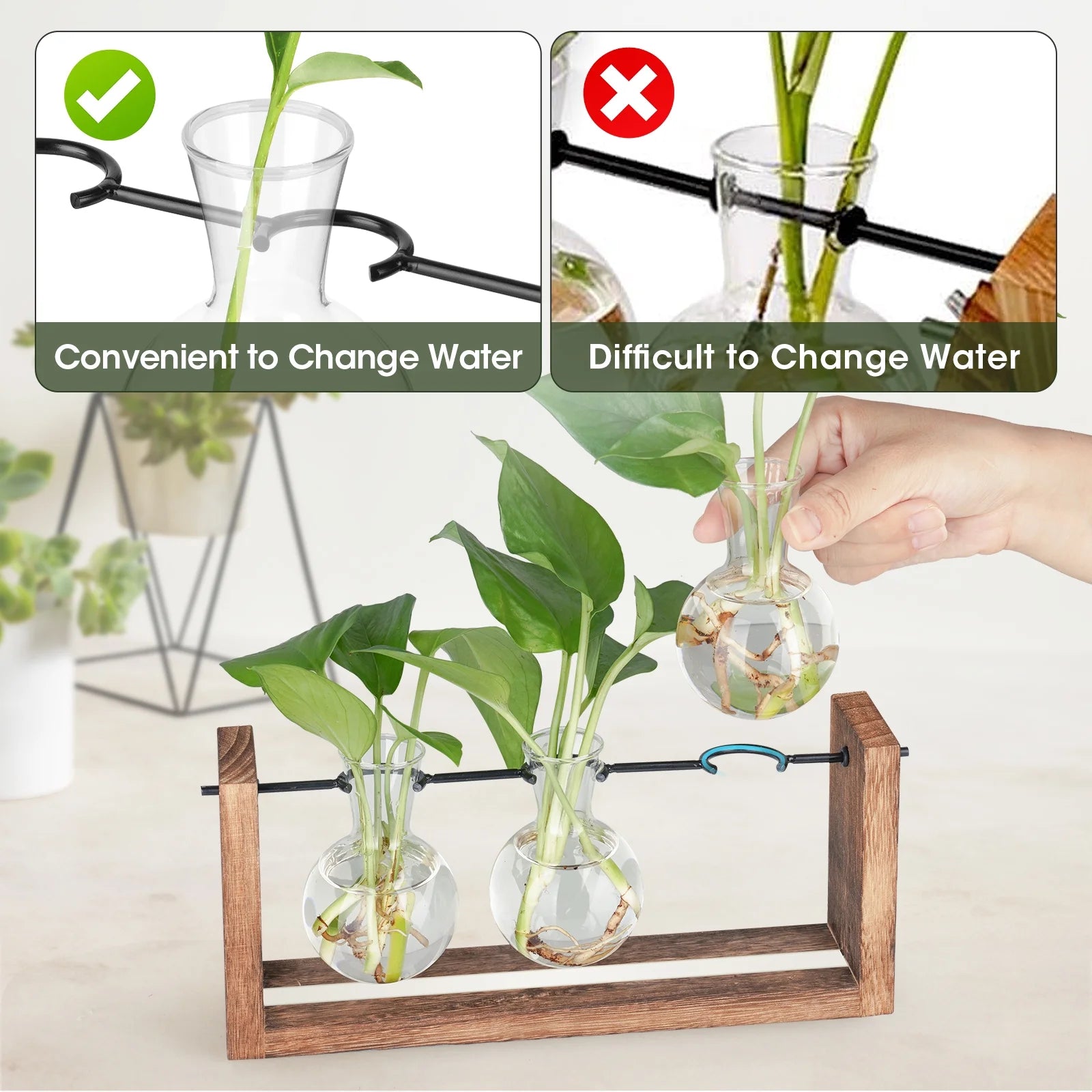 - Hassle-Free Hydration: Designed for easy removal of vases for watering, promoting healthy plant growth and effortless care, ideal for propagation and cuttings