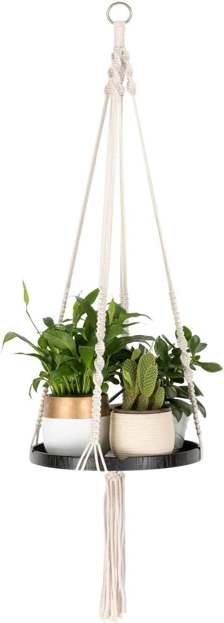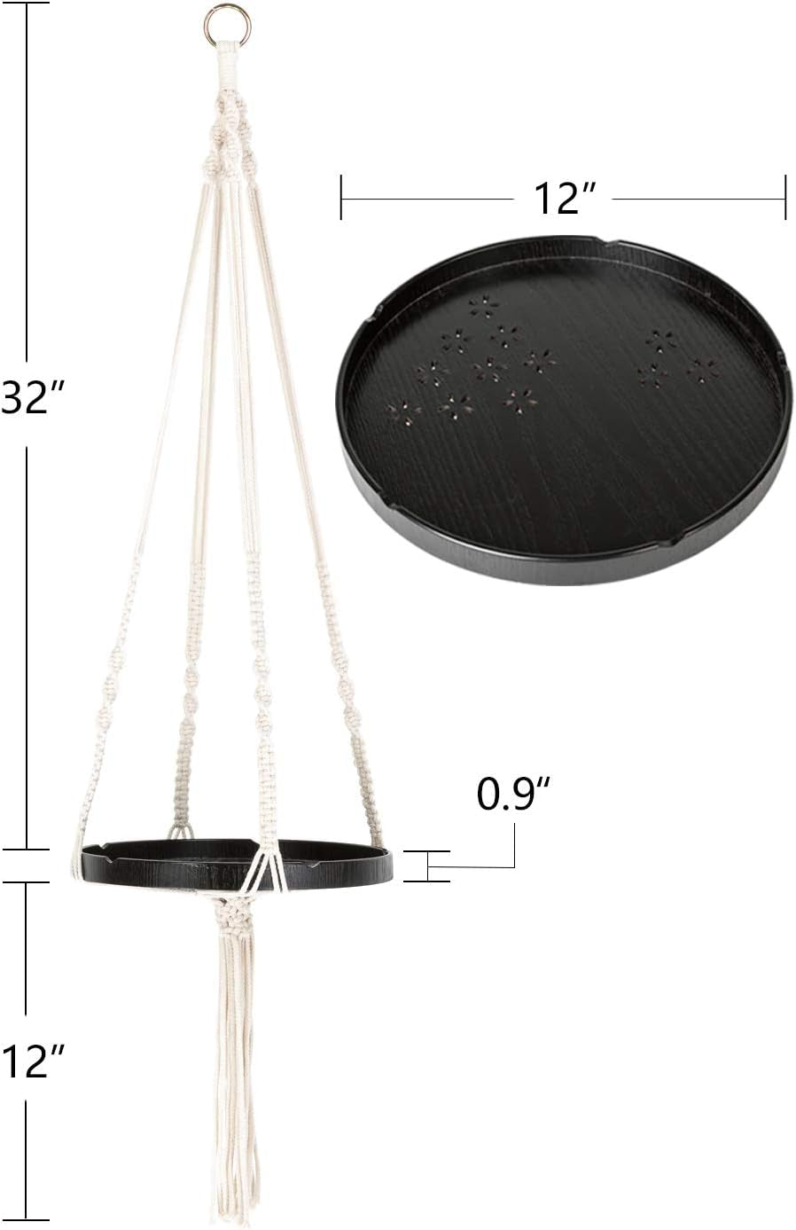 - 【Good Material and Size】Size: This macrame plant holder is approximately 50" in height, wooden shelf is about 12" Diameter x 0.9" Deep. In the pictures, this macrame plant hanger is 44" in height with the wood shelf.