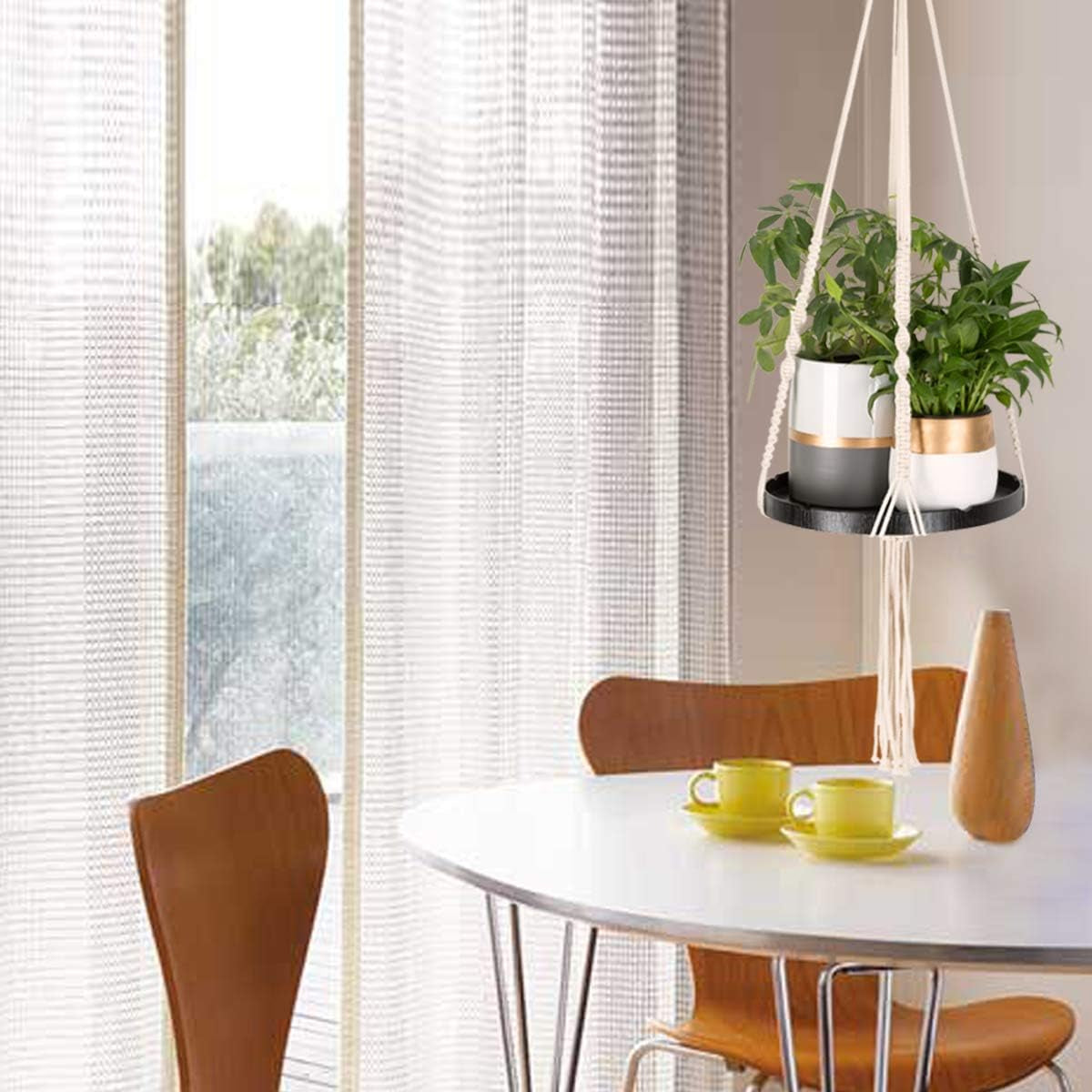 - 【Unique Design and Cut Out】This macrame hanging planter is handcrafted meticulously by local artisans with cotton cord. The black oiled wooden base has 2.3cm deep side for protection and beautiful flower cut outs on the bottom of the tray.