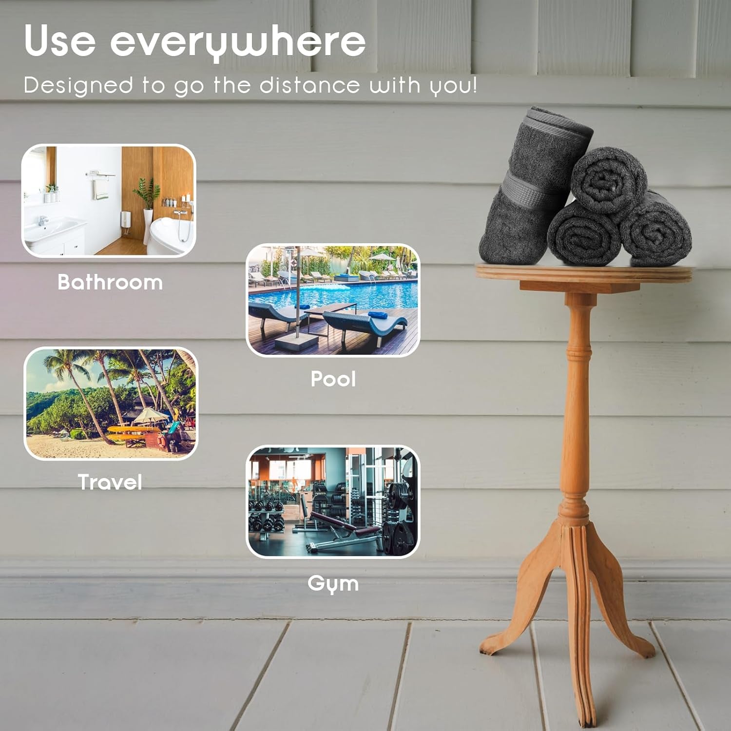 Premium Bath Towels Pack of 4, 100% Cotton, Large, Super Soft, Highly Absorbent, Quick Dry, Durable, Comfortable, Great Value & Quality, Perfect for Home & Bathroom - Grey
