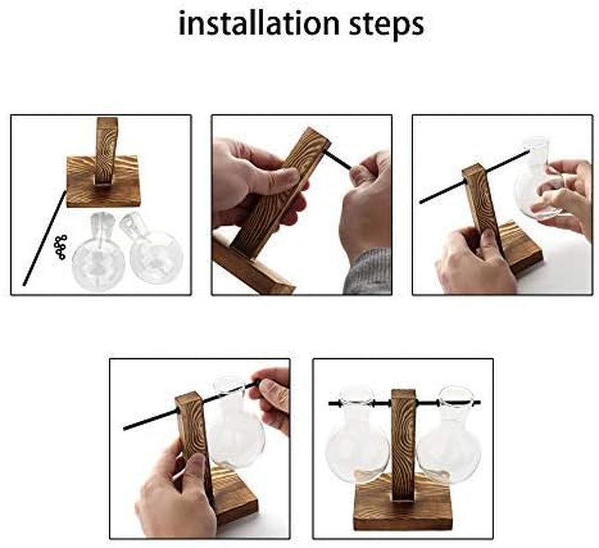 - Simple appearance - metal rotating frame combined with 1-2 bulb vases. The combination of metal and wood is more rustic and modern. Nice photo props - suitable for cool and retro styles. If you fill the bottle with colored water or put some pebbles, flowers or small fish into it, it will be more beautiful and eye-catching.