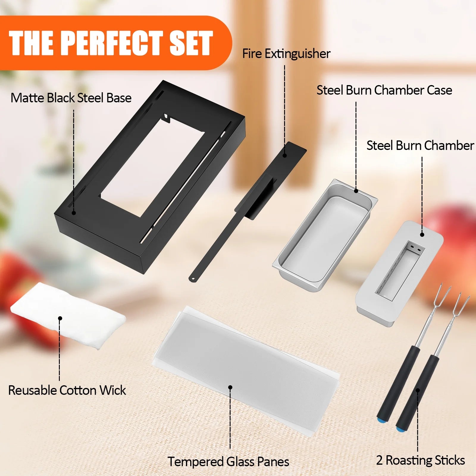 - Safe&stable: The presence of a stainless steel insert burner and tempered glass panels on both sides enhances the safety features of the tabletop fireplace